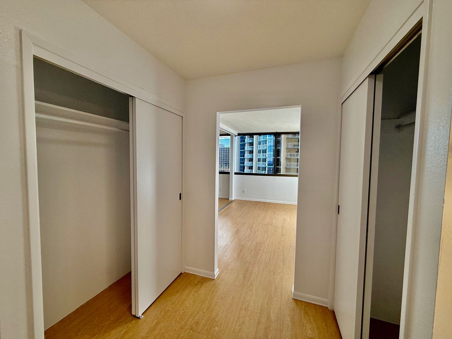 Recently painted 1 bedroom, 1 bathroom unit located on the 15th floor of the Kukui Plaza - Ewa Tower in Downtown, Honolulu. Unit includes one assigned covered parking space and access to on-site amenities such as a pool, BBQ area, and a walking/jogging path. Community laundry and trash chute located on each floor. This well-managed building has a resident manager and security. Conveniently located along the bus line in Downtown Honolulu with easy access to local shops and services, along with several shopping and dining options. Long-term lease only. No smoking and no pets. Rent includes: basic cable/internet, water, sewer and trash. Tenant responsible for own electricity billing through Hawaiian Electric. Renters insurance required.