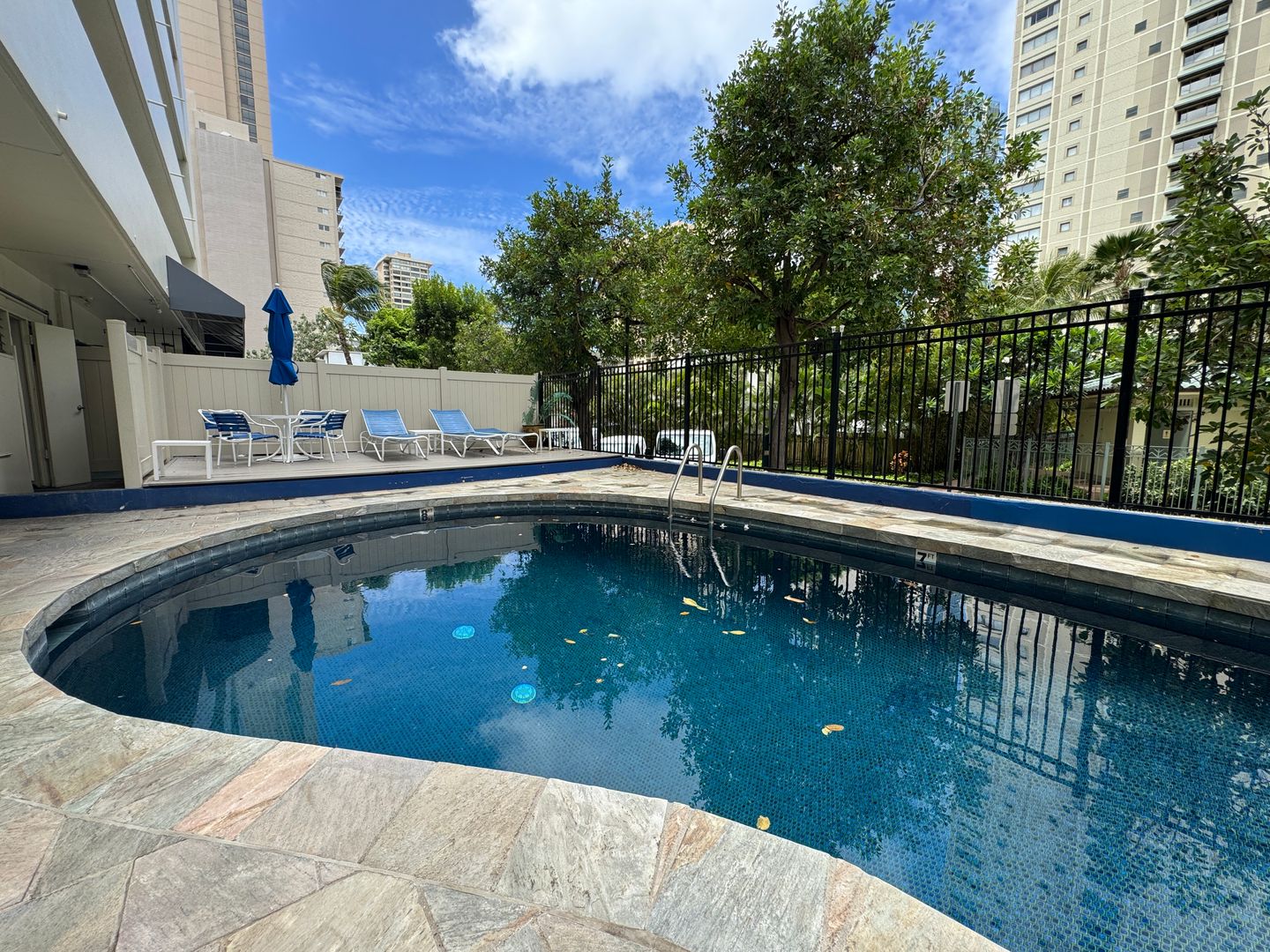 An inviting pool on the property awaits. Unit comes with one secured covered parking stall in the gated basement. Height limitation is 6 feet. Located just minutes from shopping centers, restaurants, retail shops, and beautiful Waikiki Beach.